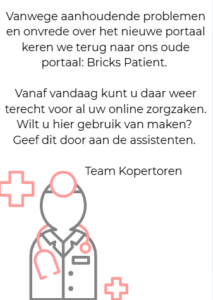 Neem contact op met de doktersassistente of klik op de knop